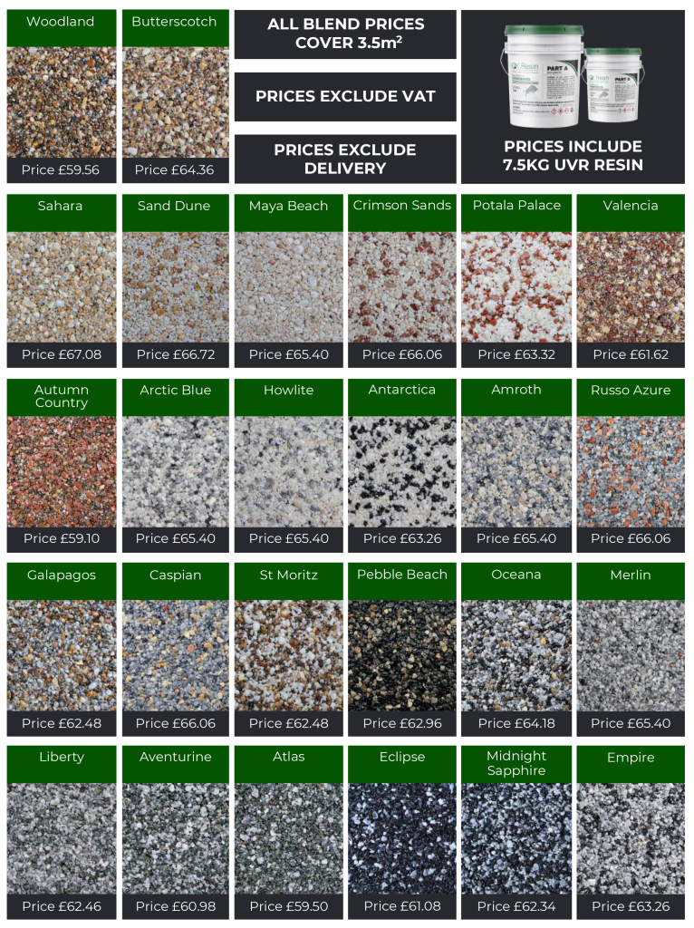 We use Ox Resin Blends in our Resin Bound Work view our sample gallery below to get a feel for designs and associated costs.